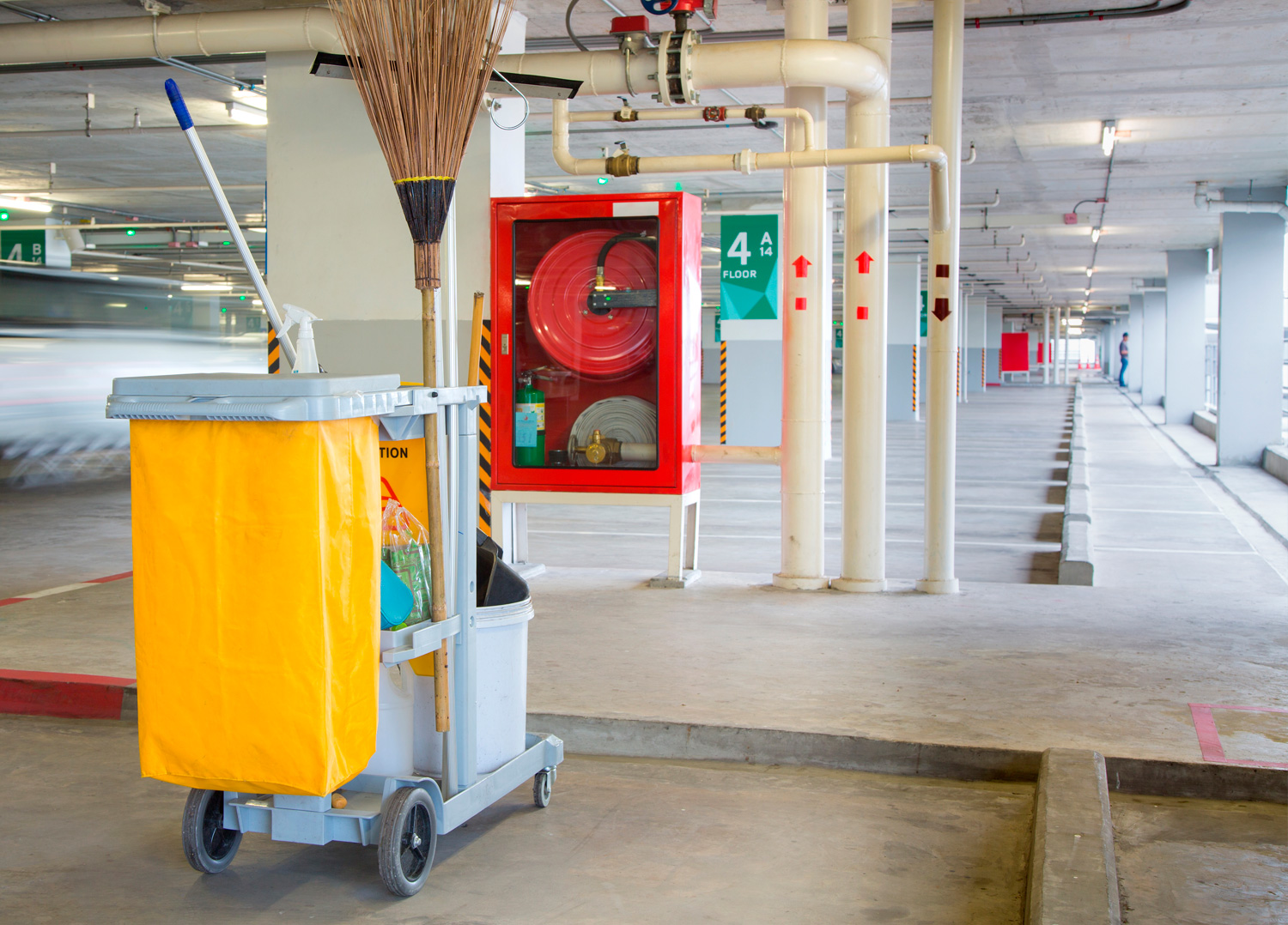 Limpieza profesional de parkings públicos y privados, subterráneos o en superficie: suelos, columnas, rampas, escaleras y puertas de acceso, con maquinaria específica.